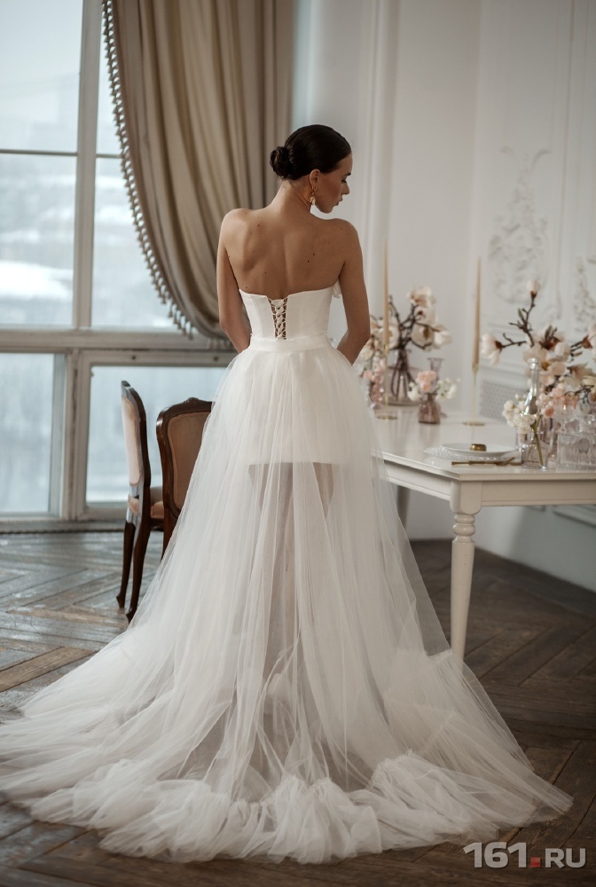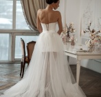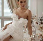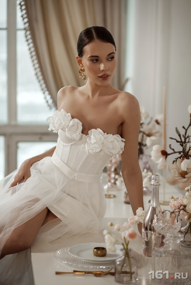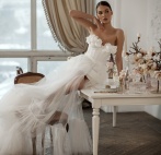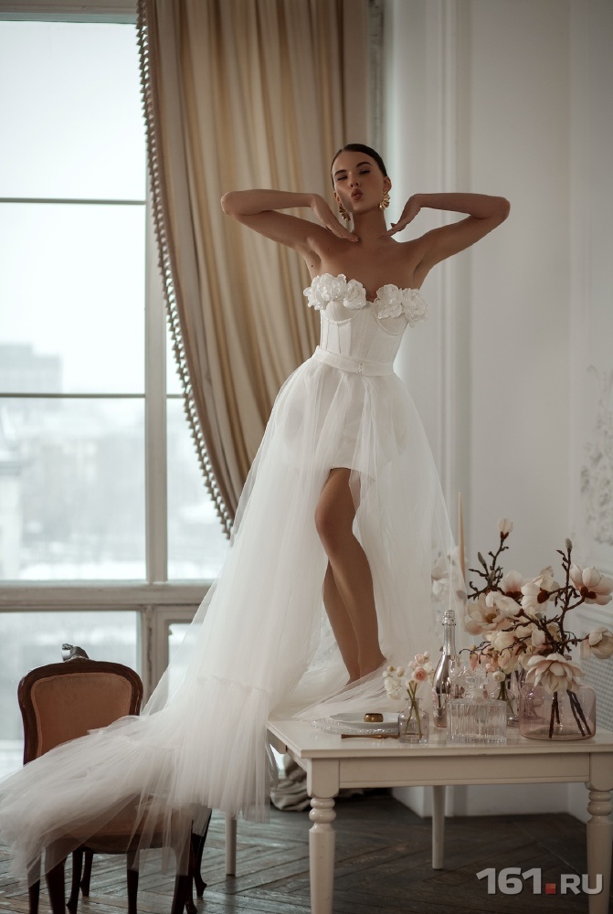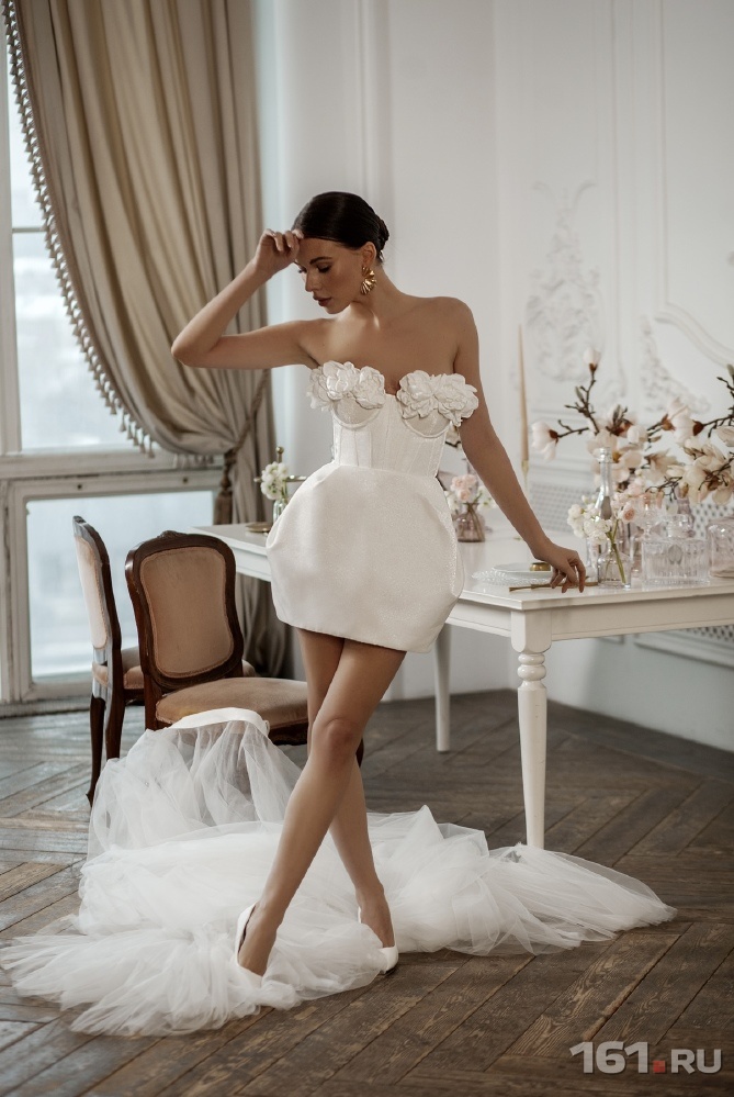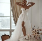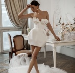 Свадебное платье Solo - модель мини, оригинальные 3D цветы, съёмный шлейф.
