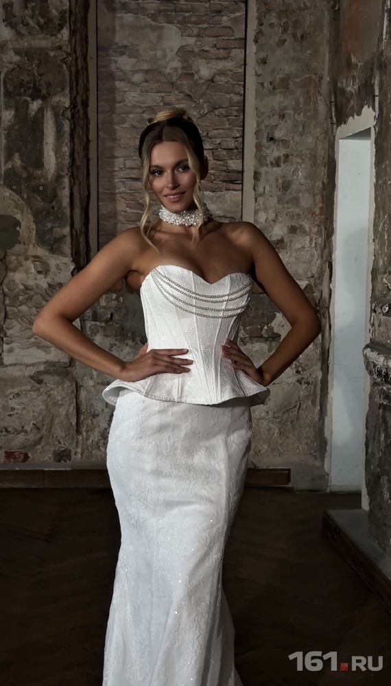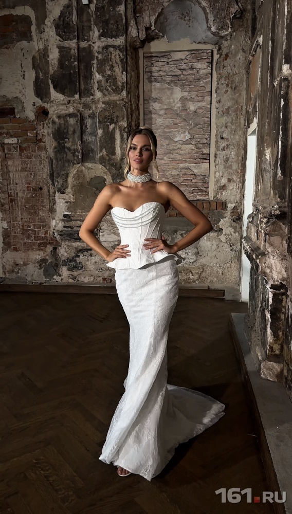 Свадебное платье Dana - Коллекция Deisy 2026. Рыбка, корсет, кружево, шлейф и жемчуг.