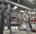3. Секция резки. На данном этапе осуществляется выдержка материала до схватывания и, непосредственно, резка. На скорость схватывания материала влияет, в первую очередь, количество гипса в рецепте. Резка осуществляется на специальном станке при помощи струн и ножей. Все обрезки идут на повторную переработку, что создает безотходное производство;