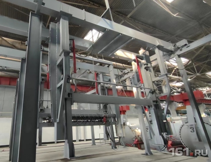4. Секция автоклавирования. Данный этап является самым важным, именно в автоклаве, за счет воздействия разогретым до ~190 градусов паром, достигается высокая прочность, в отличии от других типов блоков. При автоклавировании создается специальная кристаллическая структура в материале, которой и обусловлена высокая прочность;
